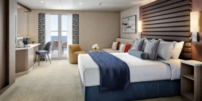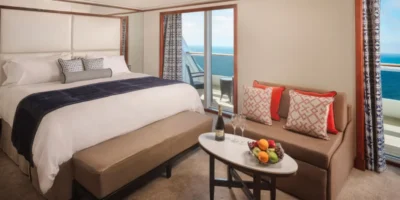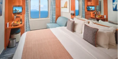 These staterooms accommodate four guests and feature two lower beds that convert into a queen-size bed and two pullman beds, plus a picture window to admire the incredible view together. And you’re close to the theater, great shopping and delicious dining.