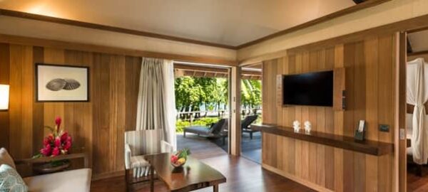Nestled in our lush coconut garden, the villa offers a lagoon view from the terrace with private pool. Beautifully appointed with a king bed and exotic Polynesian-inspired decor. For your comfort, this suite offers a generous separate lounge area and bathroom.
