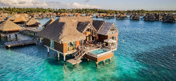 The resort offers 80 overwater villas with a stunning view of Mount Otemanu, and features a thalasso therapy spa, overwater wedding chapel, and coral garden. One of the best luxury spa’s in Bora Bora. Excellent location for a bora bora wedding.