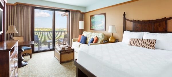 Sleeps up to 5. Partial view of the pool, courtyards, water features or landscaping from the room or balcony.1 King Bed and 1 Queen-Size Sleeper Sofa and 1 Single Pull Down Bed, 750 square feet